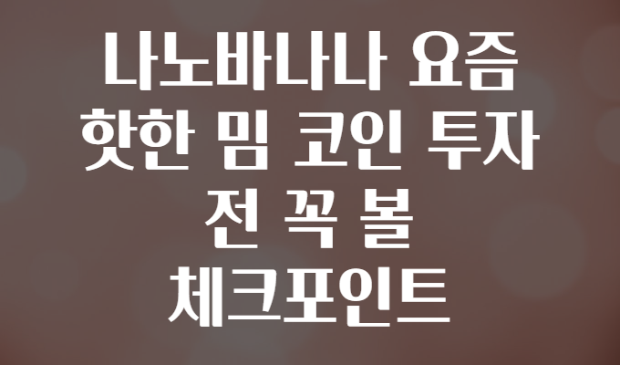 🍌 나노바나나 밈 코인, 투자 전에 꼭 알아야 할 추가 정보들 ⭐
