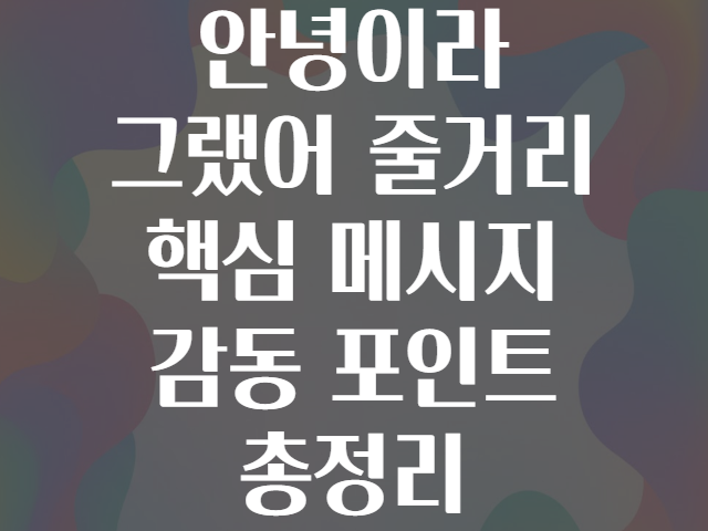 영화나 드라마, 혹은 문학작품 제목으로 보이는 ‘안녕이라 그랬어’는 보는 이의 마음을 단단히 움켜쥐는 이야기일 가능성이 높아요.😌 오늘은 이 작품의 핵심 줄거리, 담고 있는 메시지, 그리고 감동 포인트를 자세히 분석해 보겠습니다. 💡✨