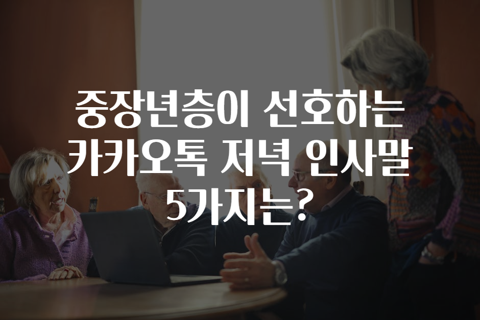 안녕하세요! 오늘은 하루를 마무리하는 저녁 시간👀, 특히 중장년층 분들이 사랑하는 카카오톡 인사말🎉에 대해 이야기해볼까 해요. 매일 저녁 한마디로도 서로의 정을 전할 수 있는데요, 어떤 인사말이 중장년층에게 특히 따뜻함과 신뢰를 전달할 수 있을지 함께 알아보겠습니다!😊💖